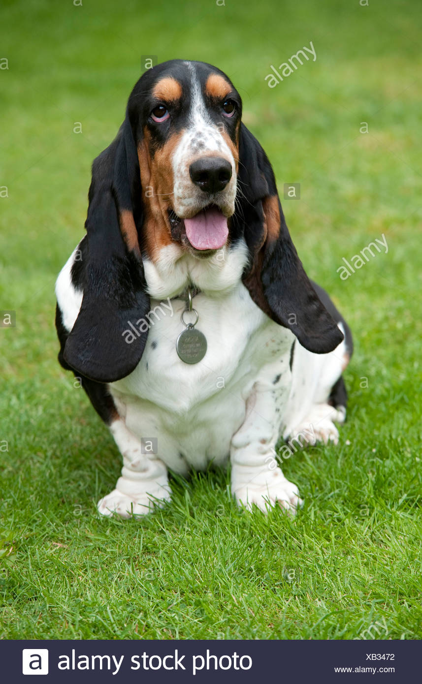 Basset Hound Dog Sitzen Im Garten Uk Stockfotografie Alamy